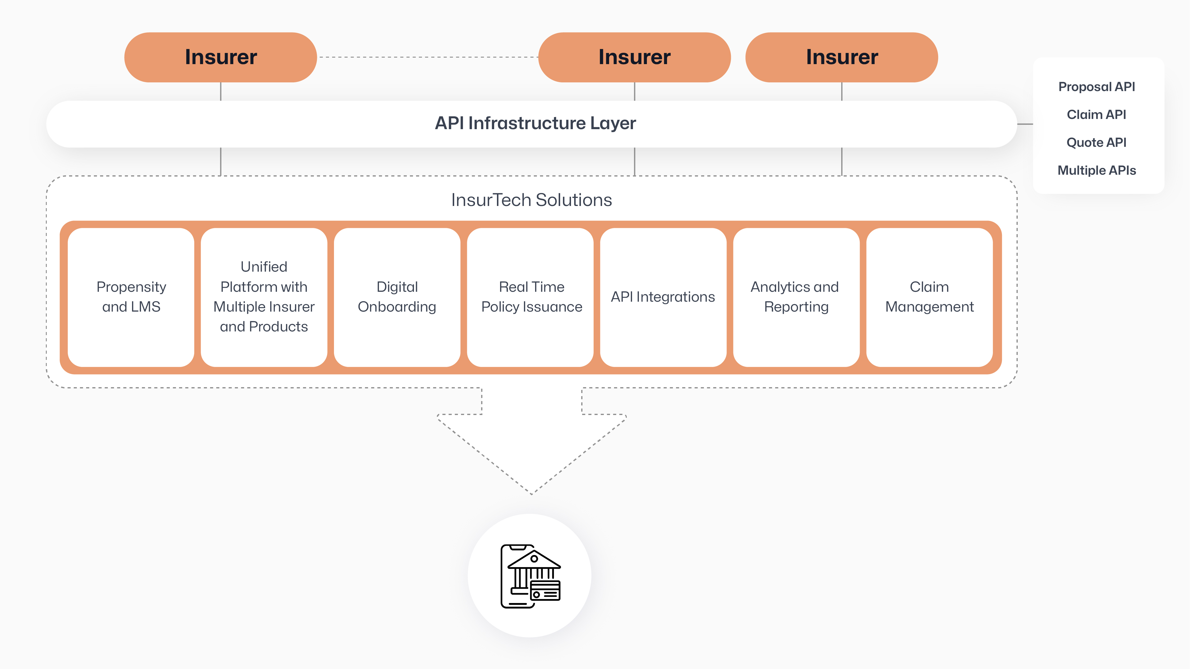 Through an API infrastructure layer, they serve as gatekeepers, providing a streamlined connection point for insurers and distributors. This standardized approach accelerates product launches and simplifies the integration of new insurance partners into the bancassurance network for banks. Meanwhile, a microservices architecture facilitates independent development and scaling of functionalities, ensuring agility and security in information exchange.